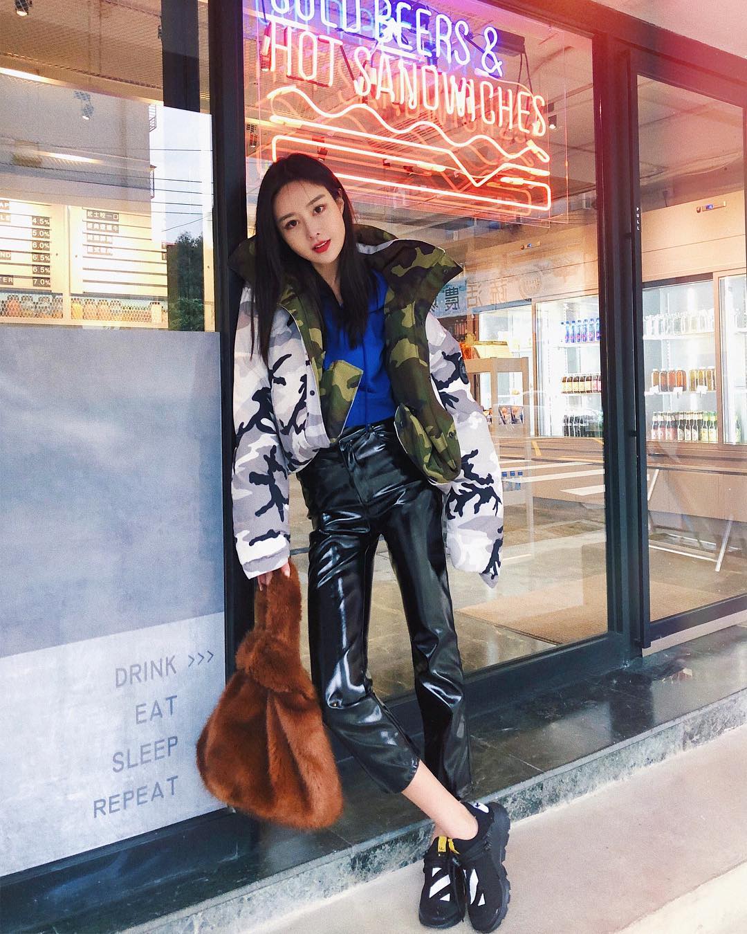 Leather pants with sneakers